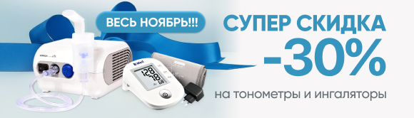 Дорогие друзья! С 1 по 30 ноября в нашем магазине проходит специальная промоакция, в рамках которой цены на самые популярные модели тонометров и ингаляторов из нашего ассортимента снижены на 30%!